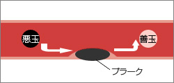 低比重リポタンパク質(LDL)に含まれるコレステロールを悪玉コレステロールと呼んでいます。この低比重リポ タンパク(LDL)は、酸化されて酸化LDLになり、血管の壁に取り込まれます。血管の壁に取り込まれた酸化LDLは、マクロファージという細胞に食べられ、蓄積していきます。この蓄積したものがプラークという血管の壁の”こぶ”になります。